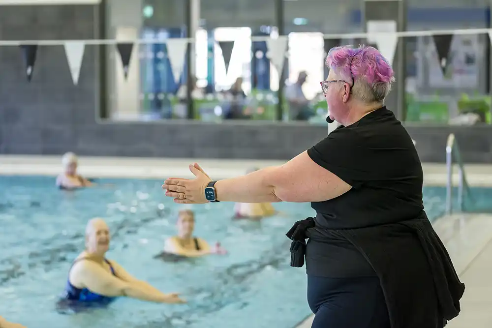 Karen has always enjoyed exercise, but aqua aerobics is particularly special for her, and she was keen to share that experience with others. Having an arthritic right knee Karen understands the challenges of feeling restricted in exercise. Karen’s goal is to create a welcoming and inclusive space where people can exercise, have fun, and improve their overall well-being.